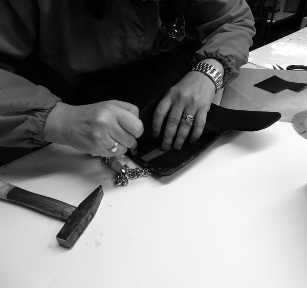 The Culture of leather crafting, typical to the people of this province, is mixed with their incomparable skill of using their hands to create original and exclusive pieces; unique masterpieces that are born from competent gestures full of virtuosity. Their hands choose leathers to the touch, feeling their flaws, cutting them without wasting, sewing, gluing, eliminating their useless thickness, softening, folding to create perfect angles with thousands of small waves to reach the final product.